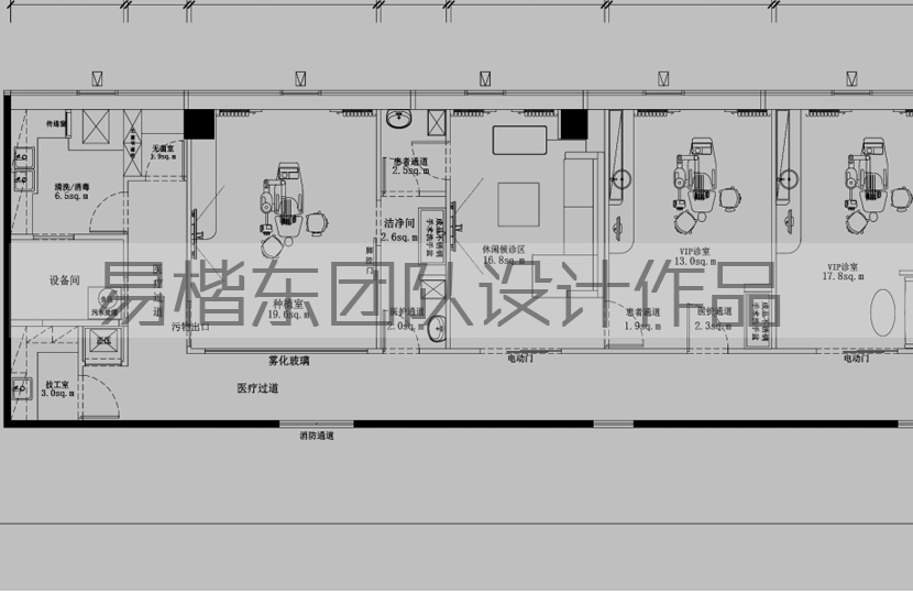 過道區(qū)域,縱深的延伸距離,拉長(zhǎng)了空間的長(zhǎng)度,簡(jiǎn)約而不單調(diào),簡(jiǎn)單的底色布設(shè)顯得干凈而大方。幾幅壁畫的點(diǎn)綴,讓整體區(qū)域有了色彩的跳動(dòng)與活力。玻璃墻將每一個(gè)就診區(qū)域獨(dú)立的間隔開,既考慮了私密性,又保全了空間的專屬性。